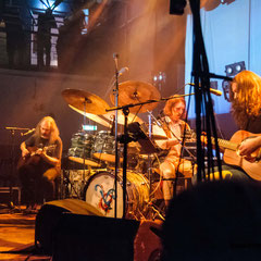 Stunde. Der Ritt durch die verschiedenen Stilrichtungen und Stimmungen verlangt Band und Publikum einiges ab. Nach dem ruhigen akustischen Einstieg drückt mich die Wucht der Musik etwas nach