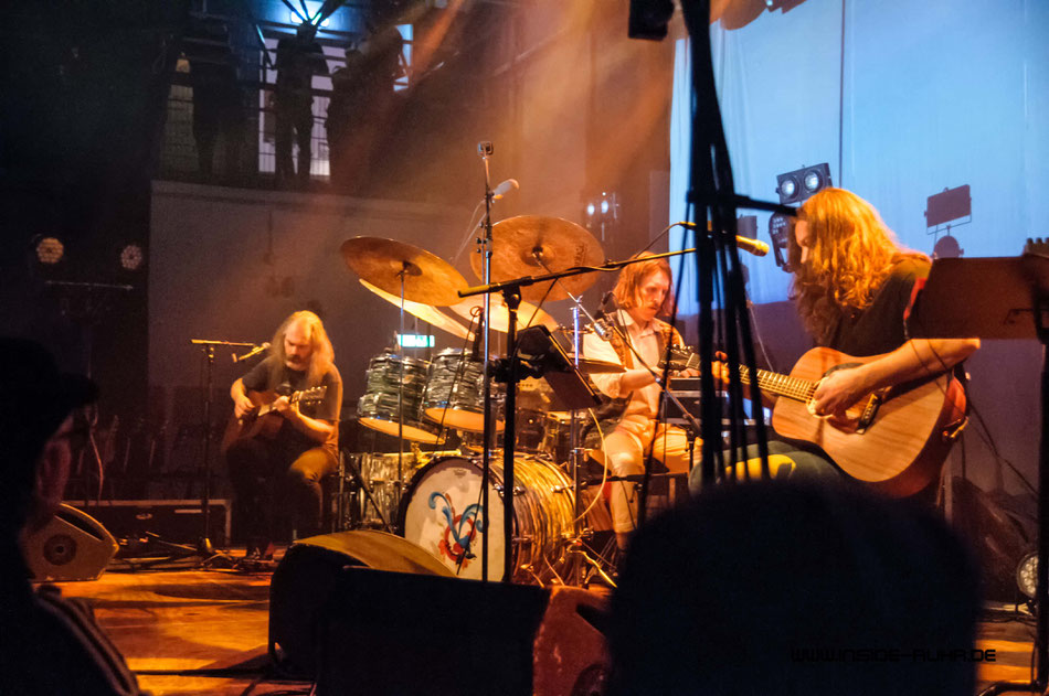 20 Uhr. Die drei Nordmänner betreten die Bühne. Auf der Bühne des Zakk sind für die beiden Gitarristen kleine Hocker aufgebaut. Dort nehmen sie nach freudiger und